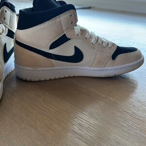Nike Air Jordan 1 Mid Sneakers in Beige & Black Colorway