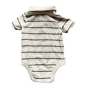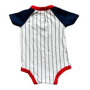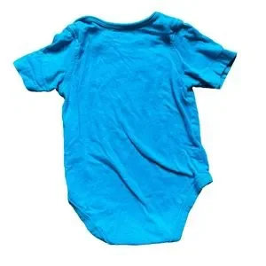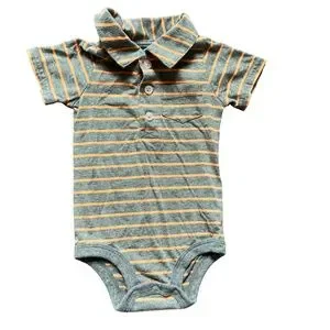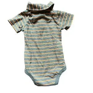 * Details: Set of 7 short-sleeved onesies / bodysuits. Two are polos. Two are light blue, two are bright blue (one says "I <3 my grandma" and the other "daddy and I agree, mom's the boss!"), one is gray and orange stripes, one is brown and tan stripes, and one is red/white/blue stripes with "little slugger" and a baseball.