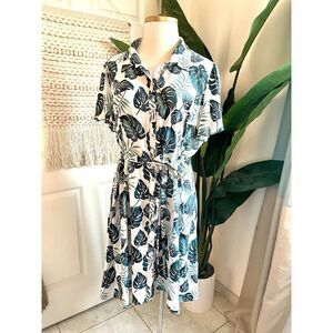 Corvia Women's Plus Size 20/22 Shirt Dress Palm Leaves Belted Lightweight