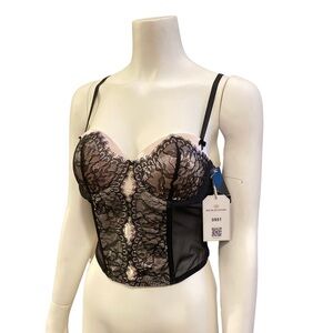 NWT DELICATES Black and Pink Lace Up Bustier, size 36B