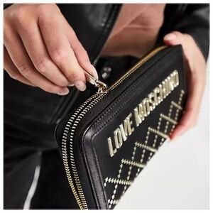 NWT Love Moschino Quilted and Studded Portafogli Pu Nero Wallet, Large