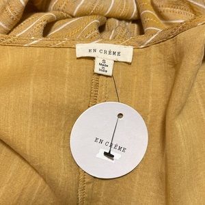 En Crème Gauze Stripe Kimono Sleeve Romper with Waist Tie Belt
