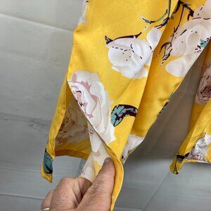 Shein Curve Size 1XL Yellow Floral Elastic Waist Wide Leg Pants