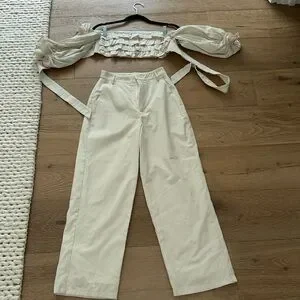 Never worn, bought the pants and they are too tight on my waist. Size is XXS for pant and top is XS. Can be sold separately if needed