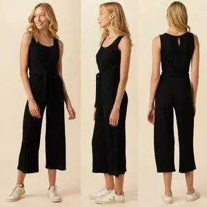 Amour Vert Briar Provence Rib Jumpsuit Black Size L Large Ankle Crop Minimalist