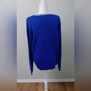 Royal blue acrylic pullover ugly/ tacky/ funny holiday/ christmas sweater.Appliqued reindeer wearing shades and christmas lights, " Bro, wheres the party?". EUC. Smoke free pet free home.