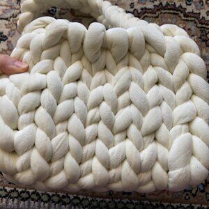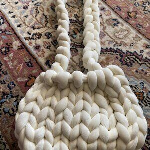 Handmade Chunky Bag in White Knit Yarn Hand Knitting Yarns