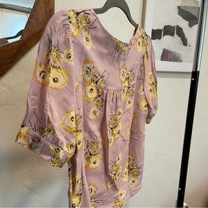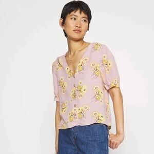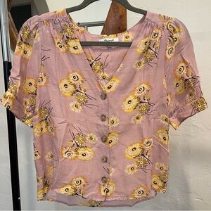 Madewell button front blouse pink and yellow floral dandelions - XS