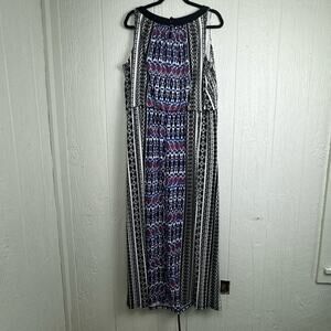 London Times Plus Black Blue Pink Abstract Jersey Stretch Maxi Dress Sz18W Artsy