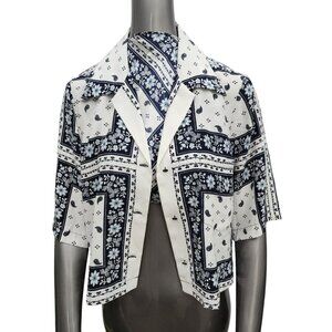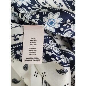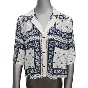 Cinq a Sept New NWT Dani Blue Floral Cropped Button Silk Shirt Top Scarf Large