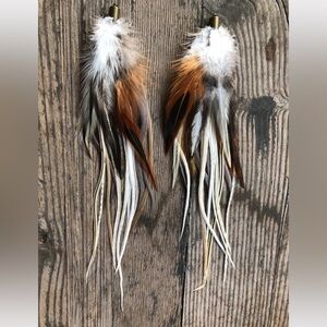 Feather Earrings, Black, Brown, Natural, One of a Kind