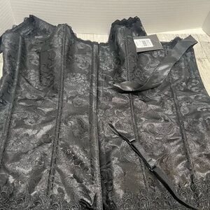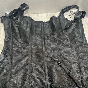 FREDERICK'S of HOLLYWOOD Dream Corset Black Satin and Lace Trim Sz 40 new