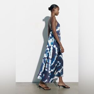 Zara dress tie dye satin effect midi maxi slip wedding casual summer vacation