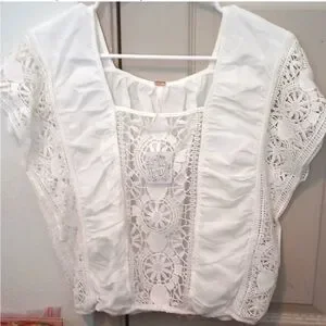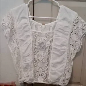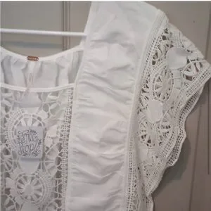 Beautiful white FP blouse with crocheted panels - NWT! I love this shirt but realized I have an abundance of white shirts in my closet! Please feel free to ask any questions!