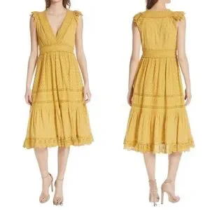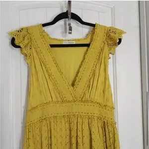 Ulla Johnson V-Neck Dress with Ruffles - Chartreuse Yellow - Excellent Condition