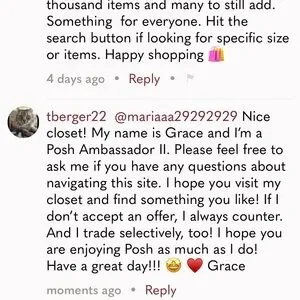 You have once before liked somethings in my closet. I wanted to let you know I am running a sale 50% off your order total. ( when you bundle 2 or more items in my closet)
