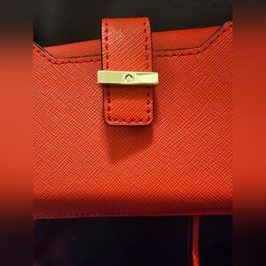 New without tags Kate Spade Red Saffiano leather crossbody in new condition no wear or callouts. Measures 5.5 inches by 3 inches with a 21-inch crossbody strap. Button snap closure, goldtone hardware, and Kate Spade logo. ID clear window, 5 credit card slots, and one large outer pocket can fit a smaller cell phone 5 inch by 3 inch size. Ships from smoke-free and pet free home.
