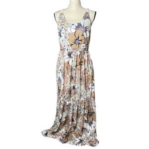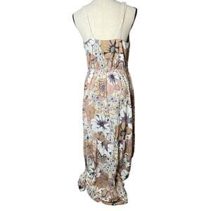 Easel Maxi Dress in Brown Yellow and White Floral Print Crochet Straps Size M