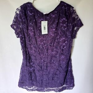 Isaac Mizrahi Lace Womens Top Size L Color Purple