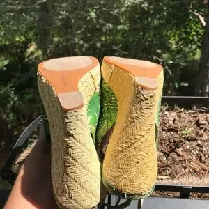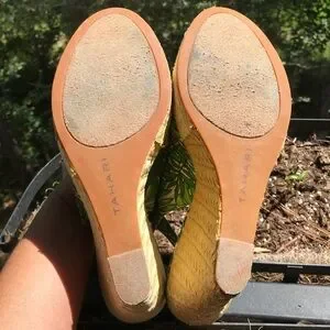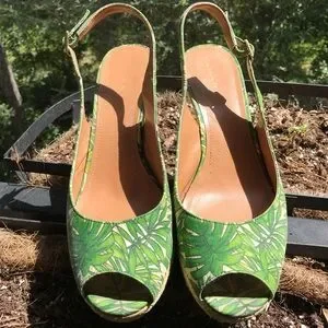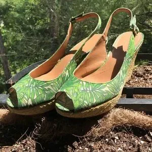 Tahari fern pattern sling back wedges.