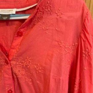 Worn only a couple of times. Featuring au courant puffed sleeves and an elegantly embroidered finish, The Bella puts a feminine twist on the classic buttondown silhouette. Style this soft-to-the-touch essential with a pencil skirt or slim denim to let its dainty details shine.