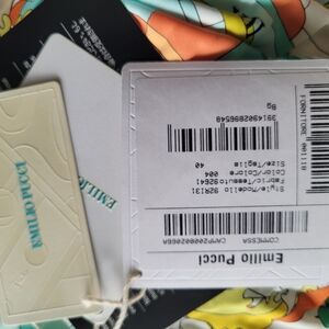 Brand new with tags Emilio Pucci dress. Size IT 40 or US 4. This dress is absolutely sensational. The pattern and colors are so pristine and vibrant. The shoulder pads give an extra slimming effect on your waist, while the cutout in the back of the dress adds that extra allure and sexyness to the piece. Invisible side zipper, slight flare, thus dress is perfection. This is one of the hardest pieces I've had to part with, but it is just too small for me. Please be sure to check out my other items as well. Bundle and save!!