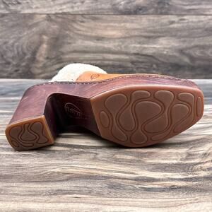 NIB Born Hope 8M Shearling-Lined Open Back Heeled Leather Clogs Brown Tan