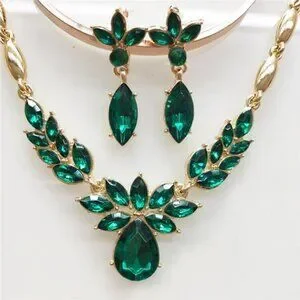 Emerald Green Necklace Earrings Set Statement Rhinestone Bridal Prom Jewelry