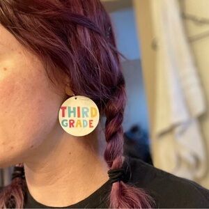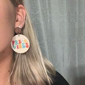 Adorable wood school grade level earrings perfect for back to school for students or teachers. Fun and lightweight for year round wear. Sold by the pair (choose which ones you want-levels listed as the sizes)