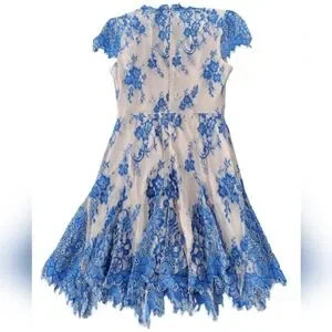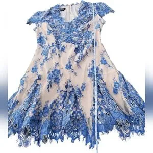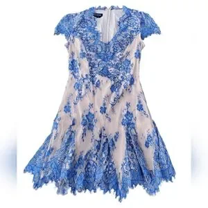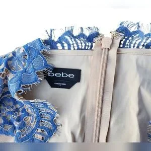 ✨️HP✨️Bebe Valorie Lace Godet Dress - Blue & Nude Size 6