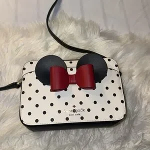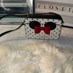 Kate Spade Disney x Minnie Mouse Camera Bag Crossbody Purse Bow Polka Dots. EUC
