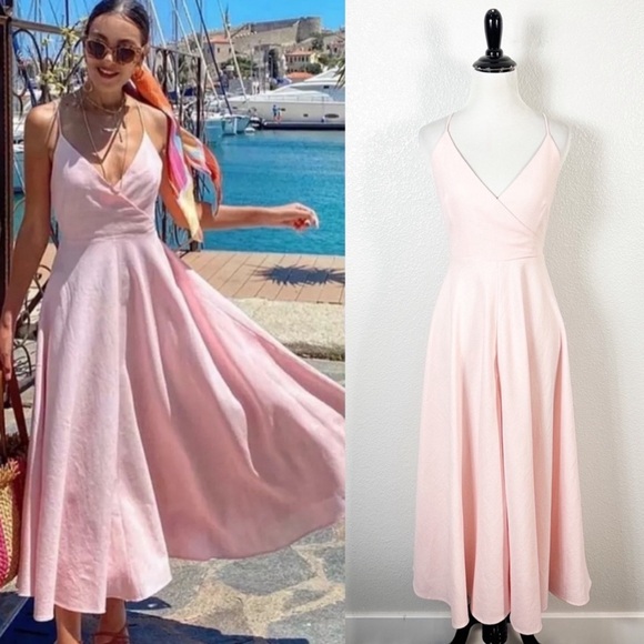 Zara pink linen midi dress