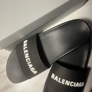Black balenciaga clog pool slides
