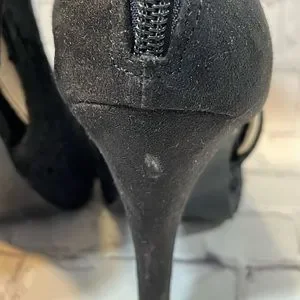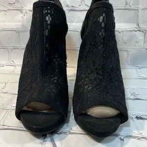 FERGIE Open Toe Black Lace Heels-8