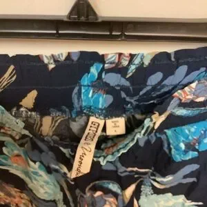 Pretty floral print, size L, comfy rayon material, ties at sides of legs, elastic waist. Used, only worn a couple times, pretty much new. No stains, holes, or smells.