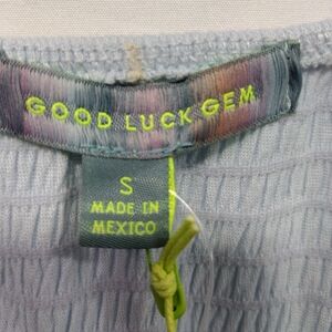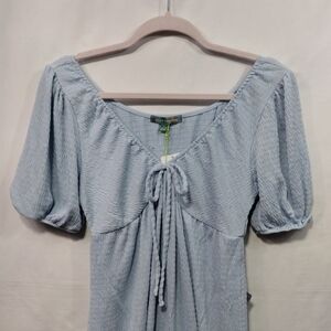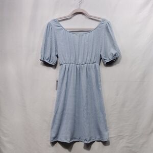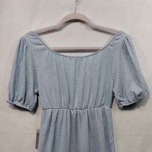 NWT Good Luck Gem V-Neck Bow Puff Sleeve Mini Dress Women's S Blue Minimalist