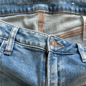 Chico’s High Rise Straight Leg Crop Denim Frayed Hem Size 8 Like NEW