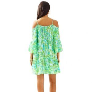 Lilly Pulitzer Alanna Off The Shoulder Dress Any Fin Possible beaded Tassels XXS
