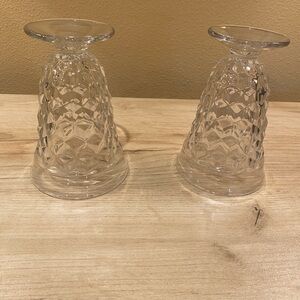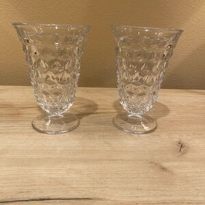 These two beautiful Fostoria Glasses are perfect to add to your collection. Seams on bottom when glasses were made. No chips. In wonderful condition! Approximately 5-1/2” tall and 4” across top and just shy of 3” base. Sold as a pair