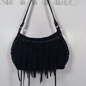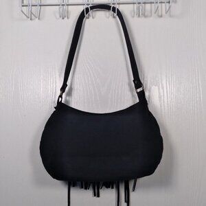 Bag has Black lining inside with 1 zipper pocket and a 2nd pouch pocket