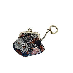 Vintage 1950s Clasp Keychain Rainbonnet Holder Change Purse Embroidered