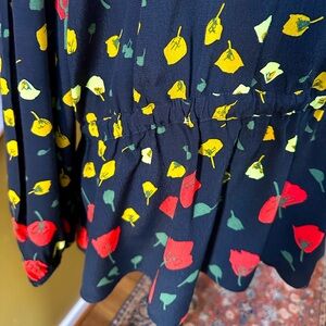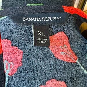 A field of red and yellow flowers on a black background give this like-new Banana Republic blouse a fresh feel!