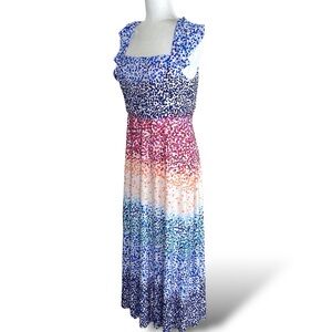 JULIA JORDAN Ruffle Flutter Sleeve Tie Back Confetti Dot Midi Long Dress Sz 10