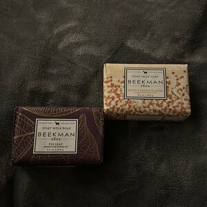 Two bars of Beekman Goat Milk soap and one liquid soap