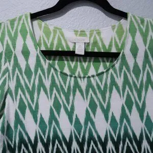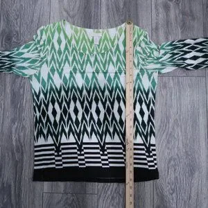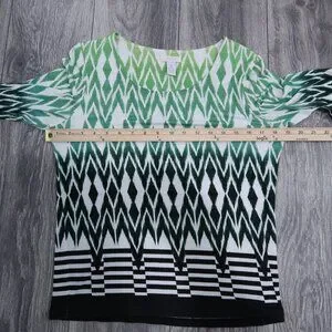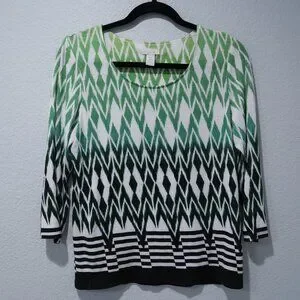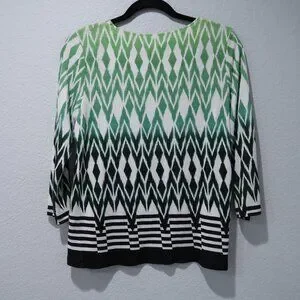Chicos Womens Easywear Top 3/4 Sleeve Geometric Print Ombre Scoop Neck Shirt 0