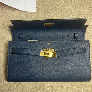 Brand New Hermes Kelly To Go Wallet Bag - Blue de Prusse / GHW
