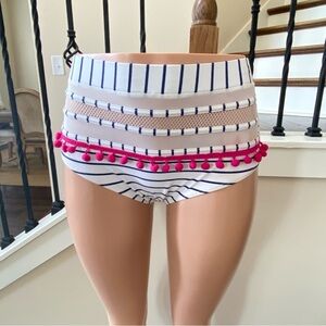 Navy and White Striped Bikini Tasseled Bottoms, size Medium