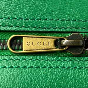 Interior slip pocket with embossed gold GUCCI logo on exterior side and serial number imprint on interior side