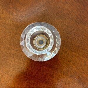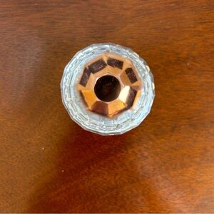 A beautiful perfume bottle with a clear bottle and pink stopper top that screws on. This piece just sparkles in the sunlight! This bottle will look lovely on your vanity or dresser.