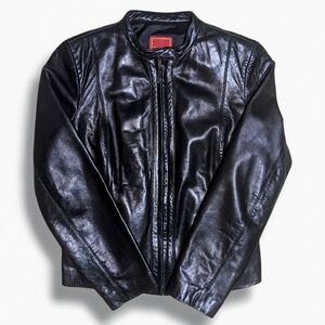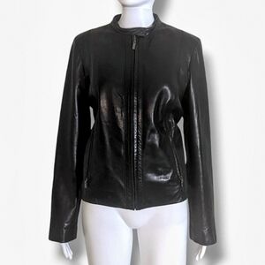 Cole Haan City | Black Lambskin Leather Vented Racer Jacket Women's Size M